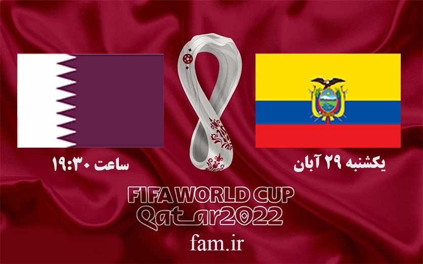 ساعت بازی دو تیم قطر و اکوادر نیز ساعت 19:30 به وقت ایران است. پخش زنده این بازی جذاب را می توانید روز یک شنبه از طریق سایت پرمخاطب fam.ir از پخش زنده شبکه سه سیما دنبال کنید.