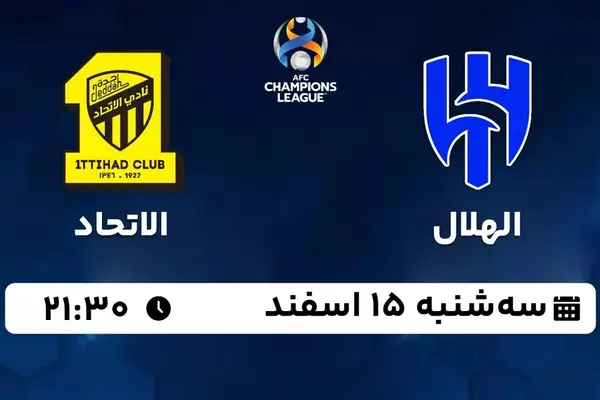 ساعت بازی دو تیم الهلال و الاتحاد نیز ساعت 21:30 به وقت ایران است. پخش زنده این بازی جذاب را میتوانید روز سهشنبه، از طریق سایت پرمخاطب fam.ir از پخش زنده شبکه ورزش دنبال کنید.
