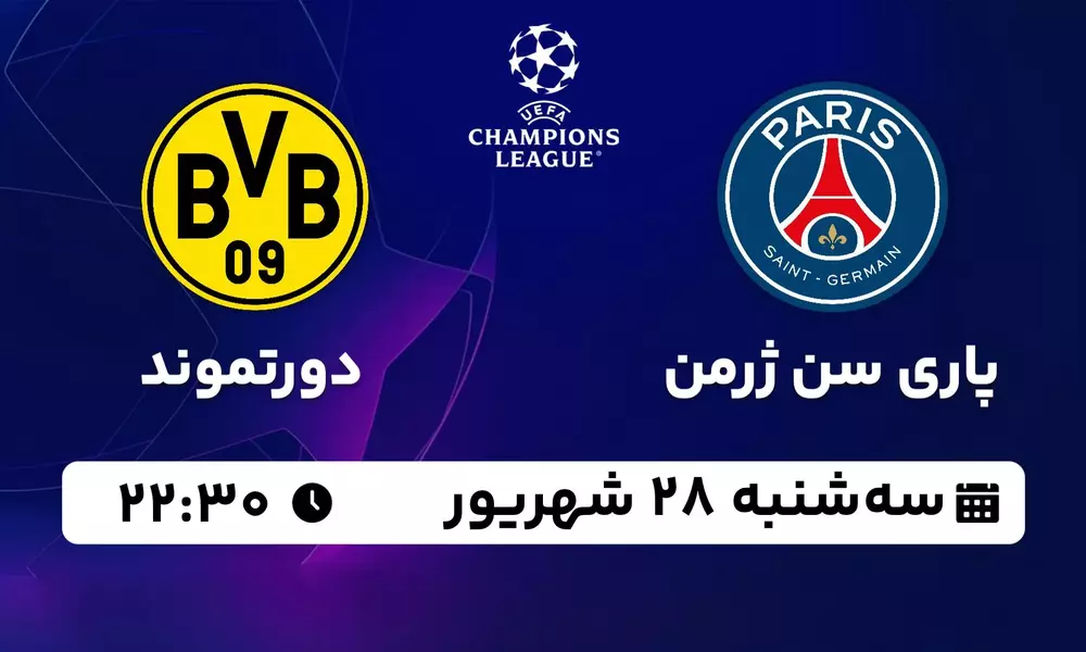 زمان پخش بازی تیمهای فوتبال پاری سن ژرمن و دورتموند چه ساعتی است؟
