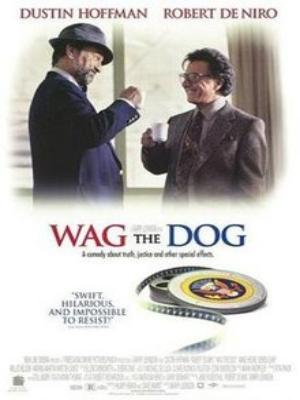 سینمایی سگ را بجنبان، کمی مانده به شروع انتخابات یک دکتر و یک تهیه کننده هالیود جنگی ساختگی را برای پوشش رسوایی جنسی یک کاندید ریاست جمهوری به راه می اندازند...خلاصه داستان